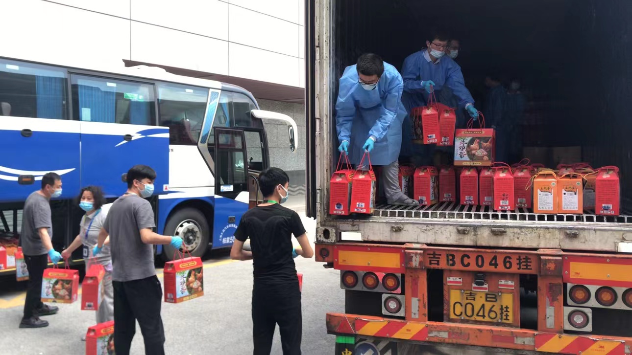 本輪疫情一開始,我們就啟動了生活物資和抗疫物資的儲備。但在3月27日那個夜晚,當數千人星夜趕回公司時,依然有部分員工的休息條件異常艱苦。在后勤團隊的努力下,這一情況很快得到了改善,睡袋、行軍床、氣墊床、折疊床等寢具不斷升級換代,還有部分員工住進了創新園宿舍和康橋基地宿舍。食品的供應也越來越豐富,青團、粽子等美食沒有缺席傳統節日,西瓜、荔枝等時令水果如約而至,韭菜盒子、康橋小龍蝦等則成為了大家心心念念的網紅美食。供應商、客戶和合作伙伴也紛紛送上了蔬菜、日用品、抗疫物資和藥物。集團各級工會為大家提供了零食、衣物和日用品,還為駐廠員工的家屬、居家員工安排了蔬菜禮包。隊伍龐大的志愿者在物資搬運、分發等工作中發揮了重要作用,特別是上百名TONY老師,為駐守員工完美解決了“頭等大事”!