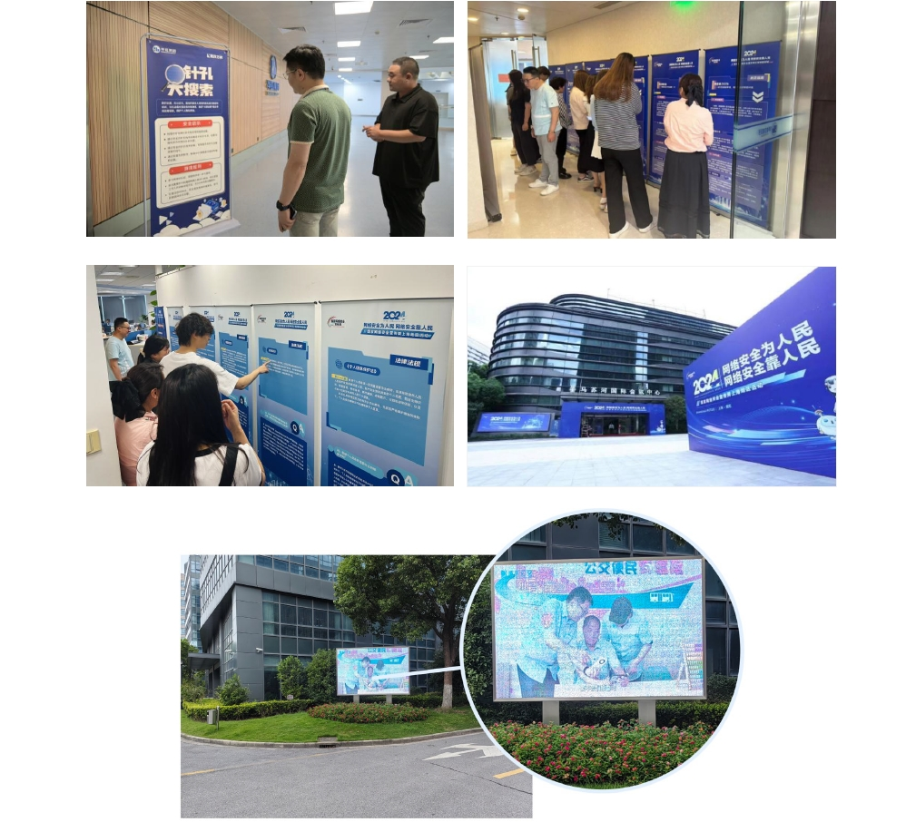 依托云工會平臺開展以網(wǎng)絡安全宣傳為主題的線上學習活動,圍繞《網(wǎng)絡安全法》《數(shù)據(jù)安全法》等5個主題開展知識競答,激發(fā)員工學習網(wǎng)絡安全知識的積極性,檢驗提升員工的網(wǎng)絡安全防護水平。線下設置網(wǎng)絡安全宣傳展板、海報、LED屏幕、宣傳手冊,邀請專家講課、組織培訓、參觀展覽,設計模擬場景查找針孔探頭,提升員工信息安全意識,筑牢個人信息安全之堤,保護企業(yè)信息安全。